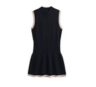 • Chic Contrasting Trim: The beige accents at the armholes and hemline provide a stylish contrast, elevating the dress with a polished finish.