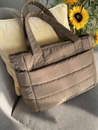 Introducing the Alex Puffer Tote Bag – your ultimate blend of style and functionality! Crafted from ultra-soft padded fabric, this oversized tote exudes a cozy texture with a modern edge.