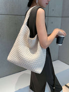 Cara Woven Shopper Bag - Medium combines style and practicality effortlessly. Made from premium vegan leather, its elegant woven texture adds a touch of sophistication. This structured yet lightweight tote is perfect for daily errands or city outings.