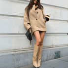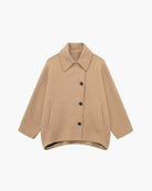This oversized women's coat features a chic wide lapel design, adding a touch of elegance to any outfit. The classic button placket with visible buttons enhances its timeless appeal, while two convenient side pockets provide practicality. The loose-fitting sleeves reach the wrists, ensuring a perfect blend of style and comfort.