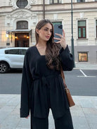 Made with high-quality materials, this set ensures durability and comfort throughout the day. Whether you're heading out for a coffee date or a casual stroll, this outfit will keep you looking chic.
