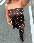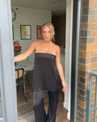 Elevate Your Style with the Fiona Satin Bandeau Set, designed for effortless elegance. This chic ensemble features a sleek strapless top paired with matching slim-fit pants, exuding confidence and modern femininity.